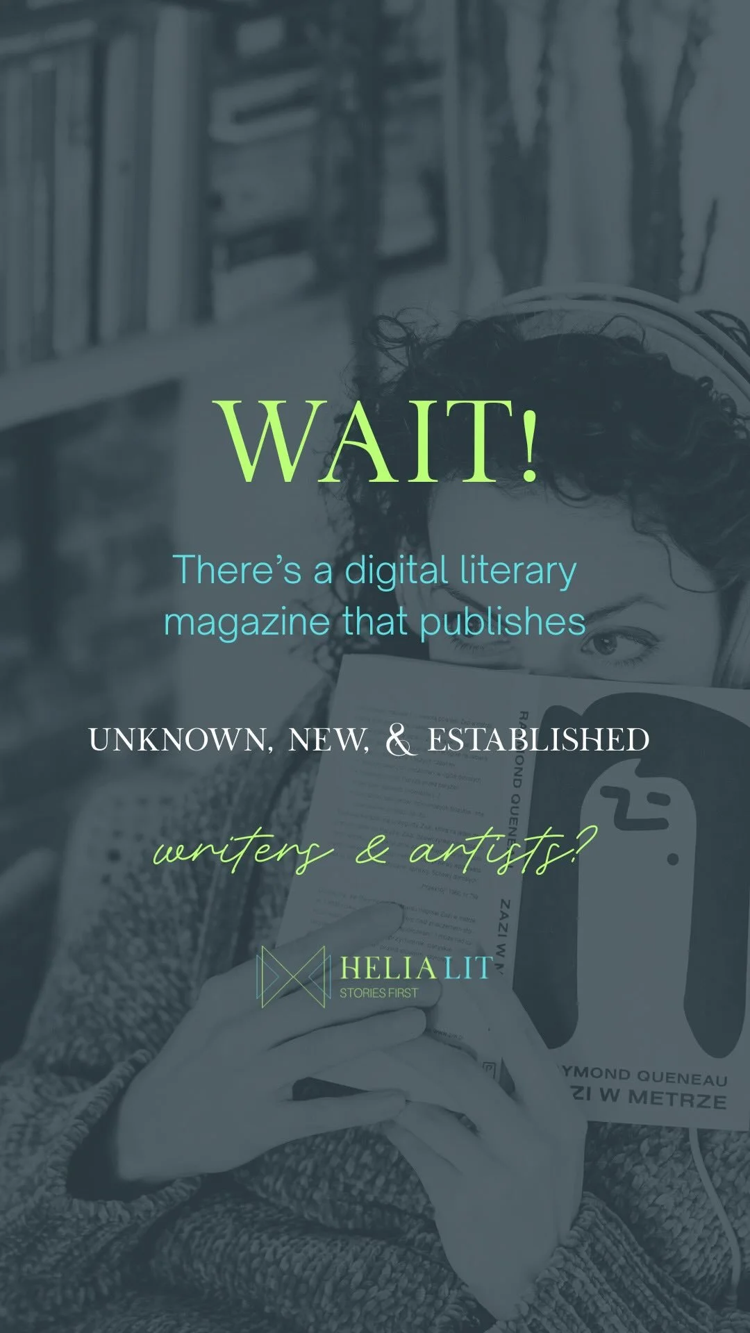 We're writers for writers. Artists for artists. We built Helia Lit because we wanted a space where work doesn't have to be marketable to matter, where you don't have to fit a specific aesthetic or follow a trend or check boxes to get published. If you blend genres, bend rules, or keep to tradition, your work has a home here.